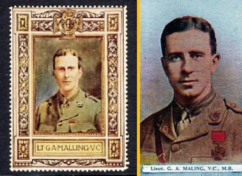 The items below commemorate a Victoria Cross hero of the Great War - Lt George Maling. The cigarette card reads: