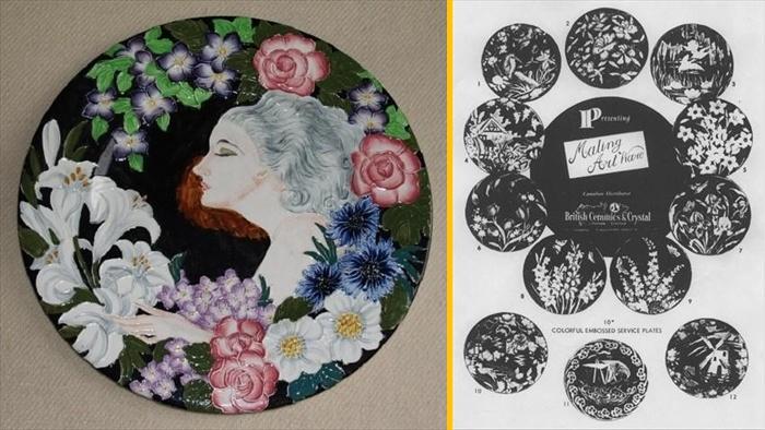 LADY - She bears an impressed date of 1946, but doesn't appear in the advertisement. Nor can we find an example from the 30s. Maybe she was designed at a time when tastes had moved on and this style wasn't in vogue any more. The other lay plates are common, but the lady isn't. For once we have to use the word "rare".