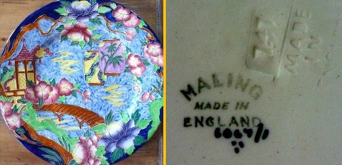 We agree that it's 6067. We can confirm that it is Japanese Lanterns and the three dots are the mark of the paintress (name unknown). Other examples also show 6067, so that's one error fixed. The /1 is another item to clear up. c1900 Maling did use these codes to indicate things like gilded rim or different grounds, but we don't normally associate this with the 40s. We think the /1 indicates the mottled light blue ground as opposed to the standard solid blue.
